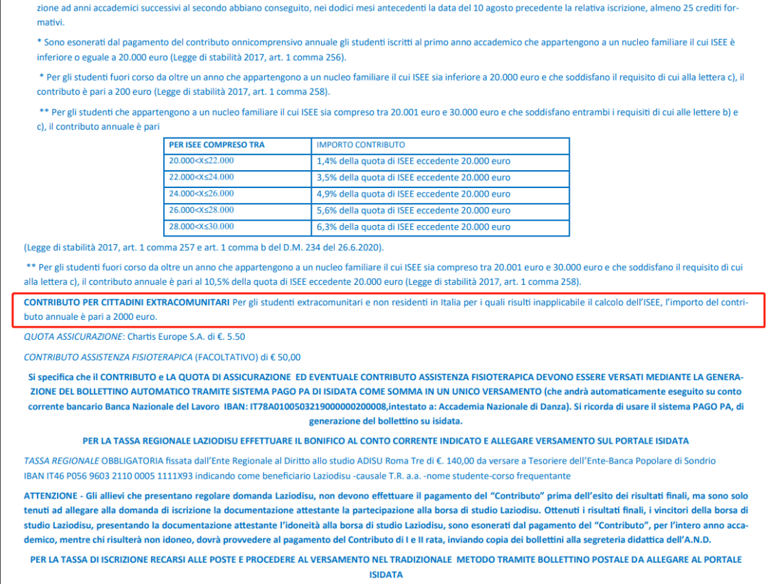 非欧盟的,不出示/不适用 ISEE的话,学费减免前大致学费在2000欧,有ISEE的话注册费更少哦~~