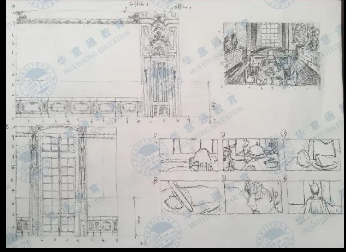 还有教授会规定一个时期,你需要把那个时期的建筑风格和相关的元素默画下来。非常考验徒手画图的能力。