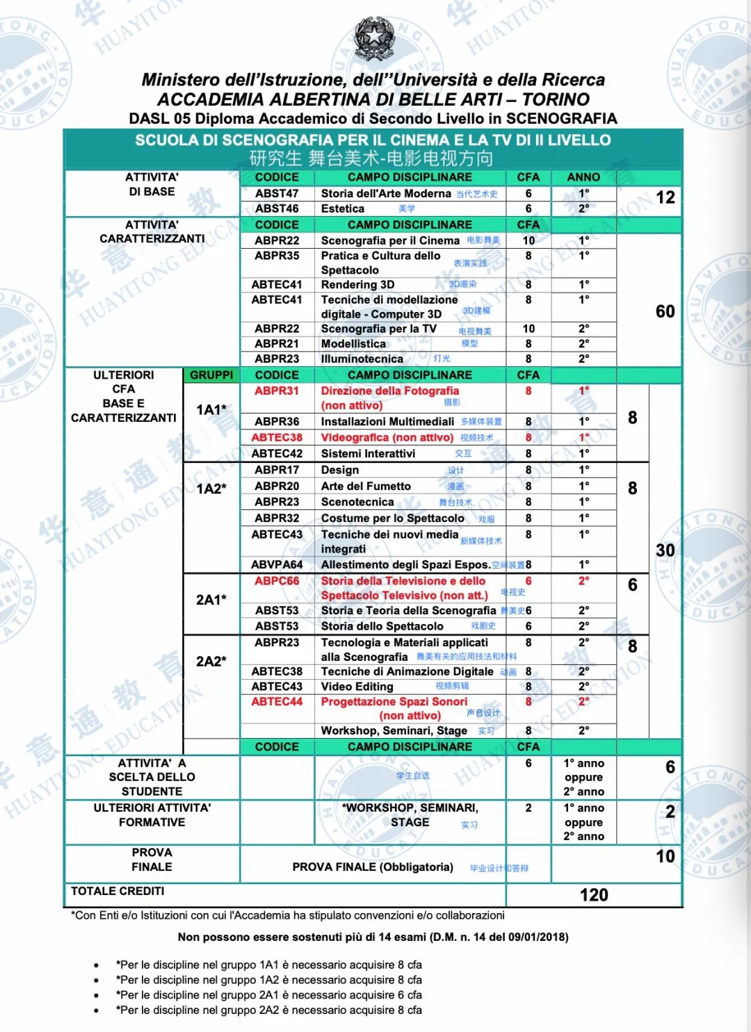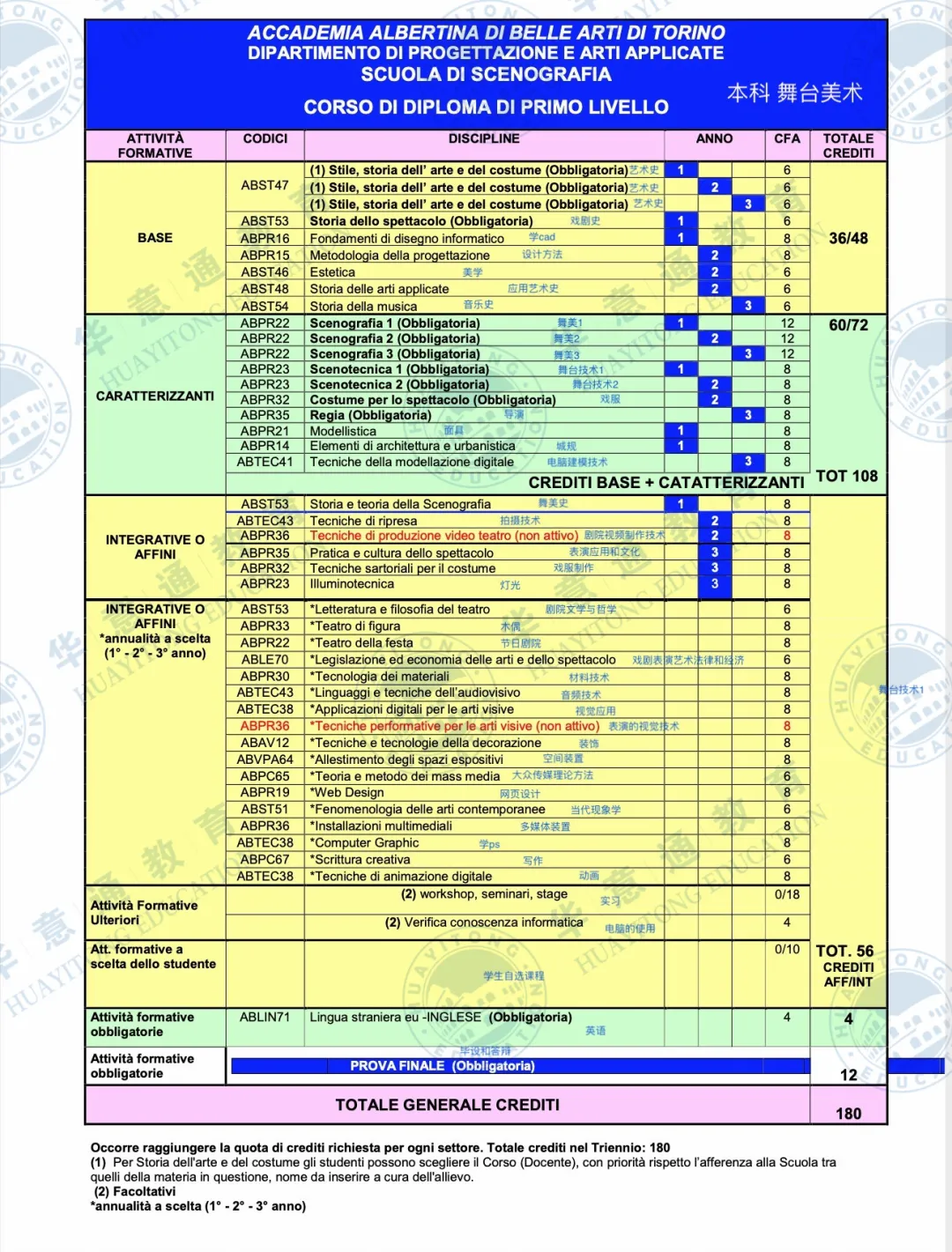 舞台美术开设本科和研究生专业,像是浅绿色部分的舞美1、舞美2、舞美3是主课,而戏服、舞台技术等属于专业课程。