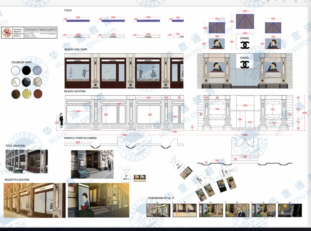之后你想设计一个场景,比如贴香奈儿的logo,需要用到的材质,需要贴什么海报,用到的颜色,都需要画一个效果图。当然还有平面图、分镜头这些。