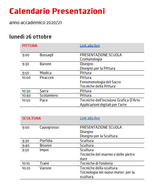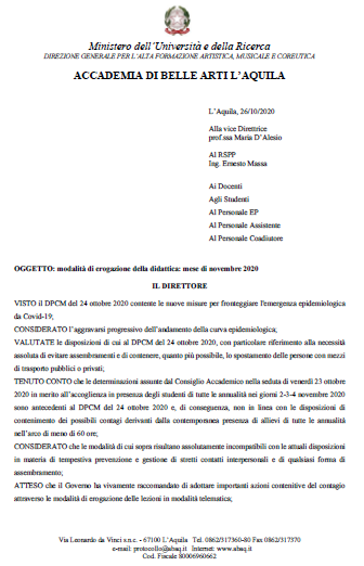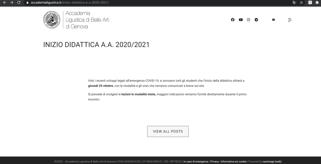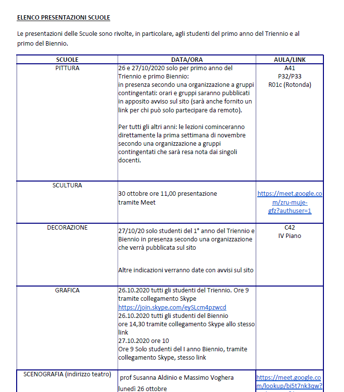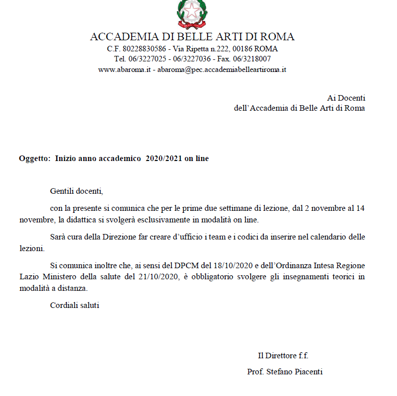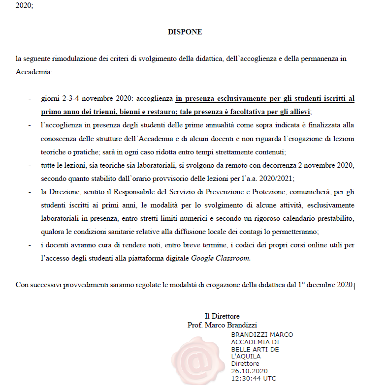 2020年意大利美术学院|新学年上课安排信息汇总【翻译版】