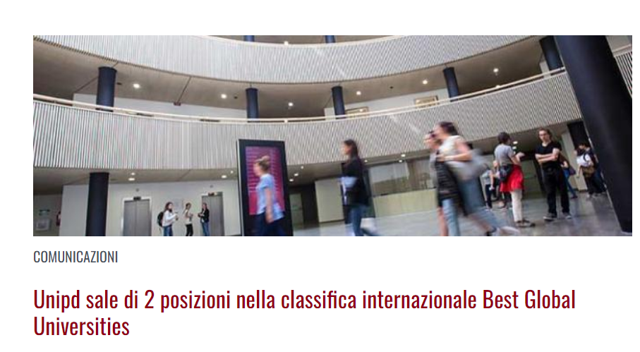帕多瓦大学在全球最佳大学国际排名中上升2