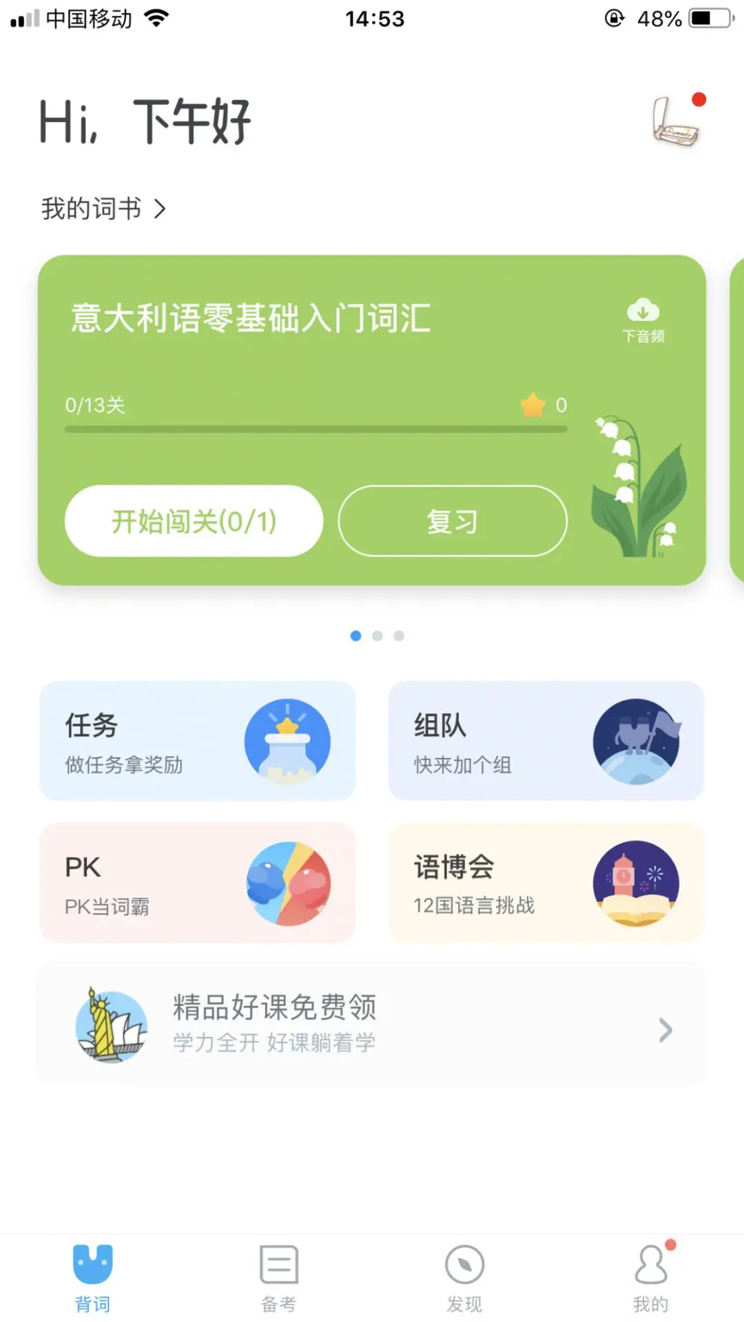 这个,我应该不用多说吧~闯关记单词,里面词书还蛮多的,从初级到高级,你放它鸽子的话天天儿催你~