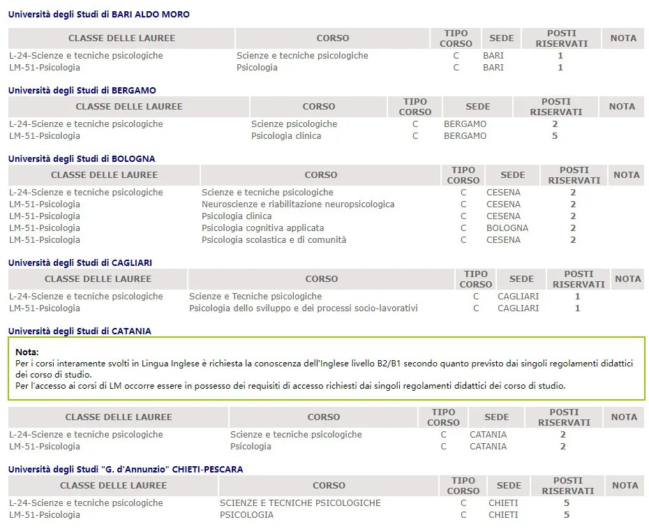 还是以帕多瓦大学为例,本科心理学专业需要参加入学考试,英语授课和意大利语授课入学考试会有区别。