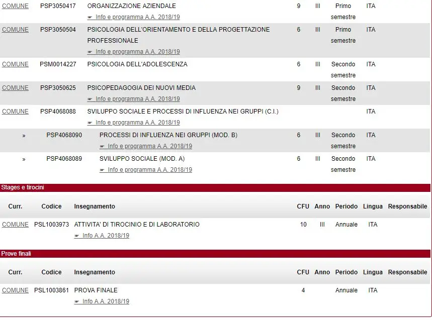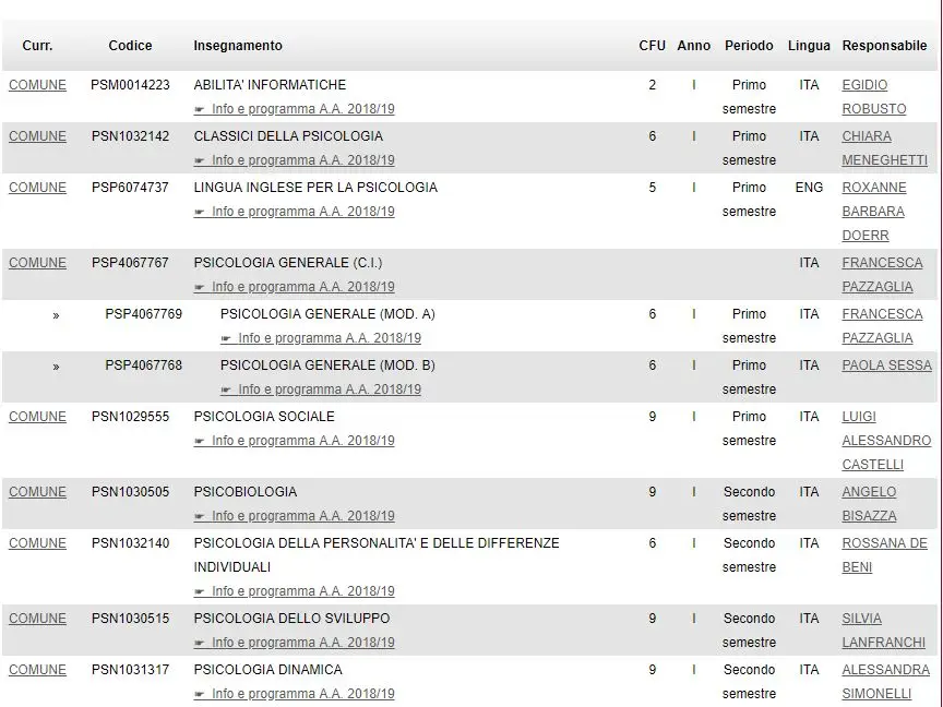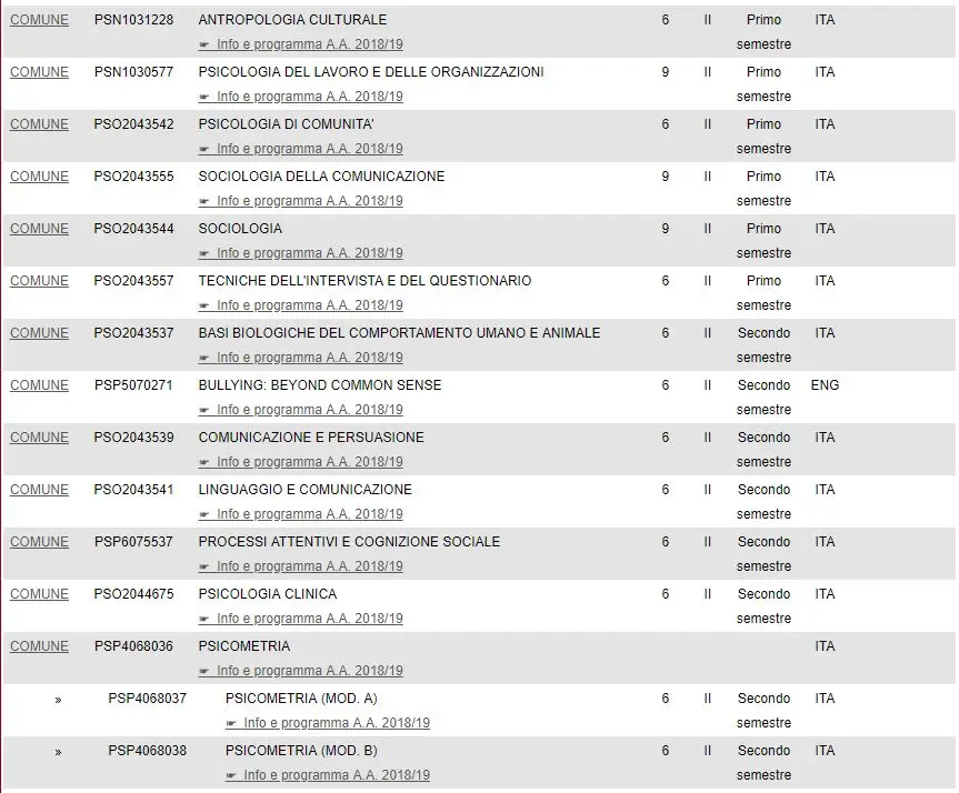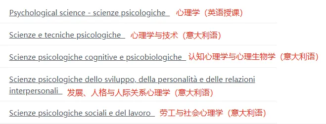 帕多瓦大学的心理学本科一共有五个专业,一个英语授课,其余的都是意大利语授课。