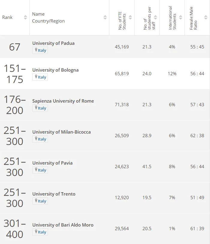 从以上排名可以看出,帕多瓦大学、博洛尼亚大学、罗马一大、特伦托大学、米兰比克卡大学、帕维亚大学等都是你去意大利学习心理学的优选。