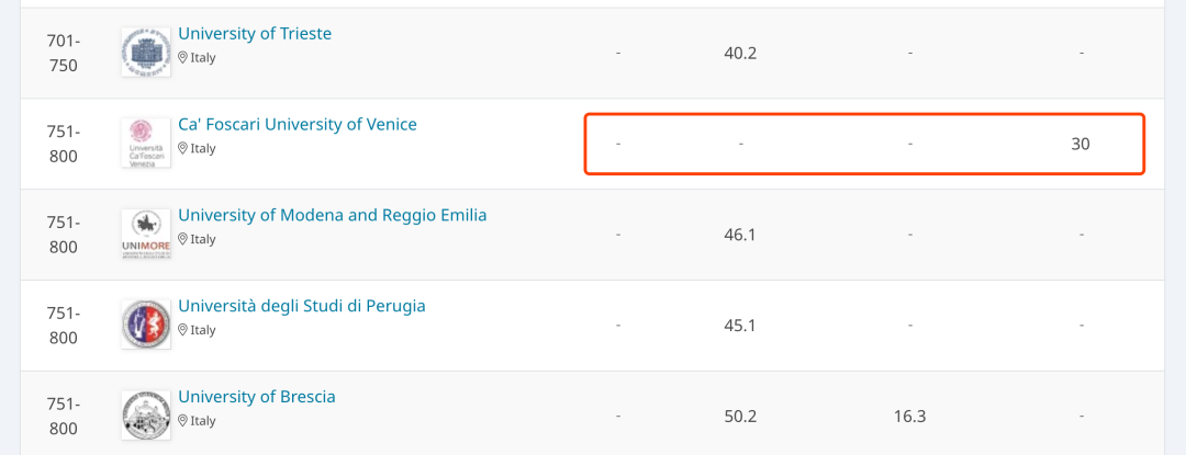 大家可以看到,威尼斯大学的文科专业排名,都是全球前200,但是综合排名真的是有点让人想哭。