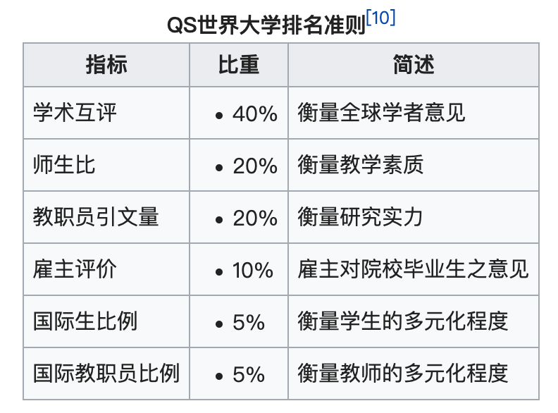 QS排名有他们自己的排名标准,我还特意查了一下,请看下图: