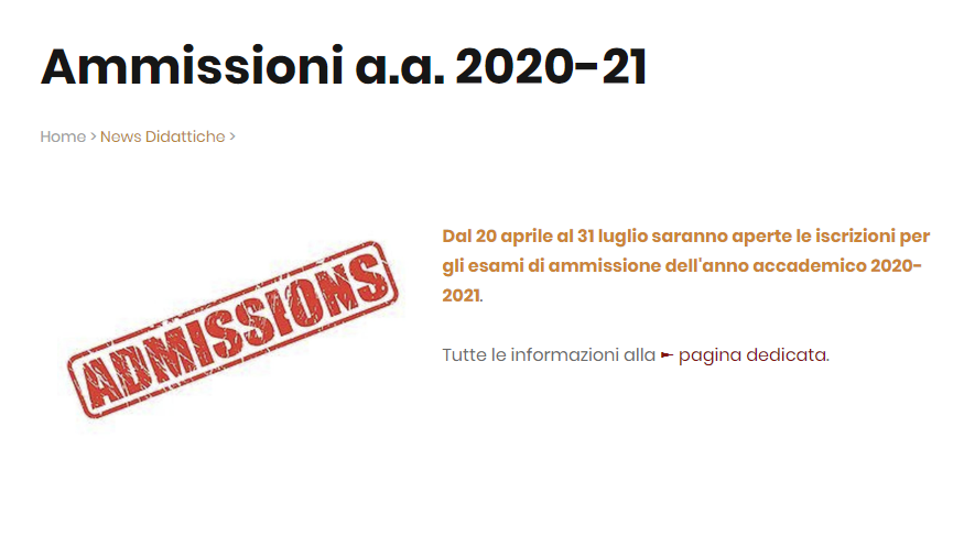 Gemma:我们学校考专业很早,考这个学校也是因为他们考得早。我是去年6月7号考试,4月就报名了。今年因为疫情延迟到9月(考试),今年的图兰朵太惨了,现在好像也可以报名,只要预注册了应该都是可以报名的。如果在考专业前没有语言证的话,就必须参加语言考试,但是语言考试特别特别难,几乎没有中国人能通过。也蛮好的,再学几个月意大利语巩固一下反正也是免费。