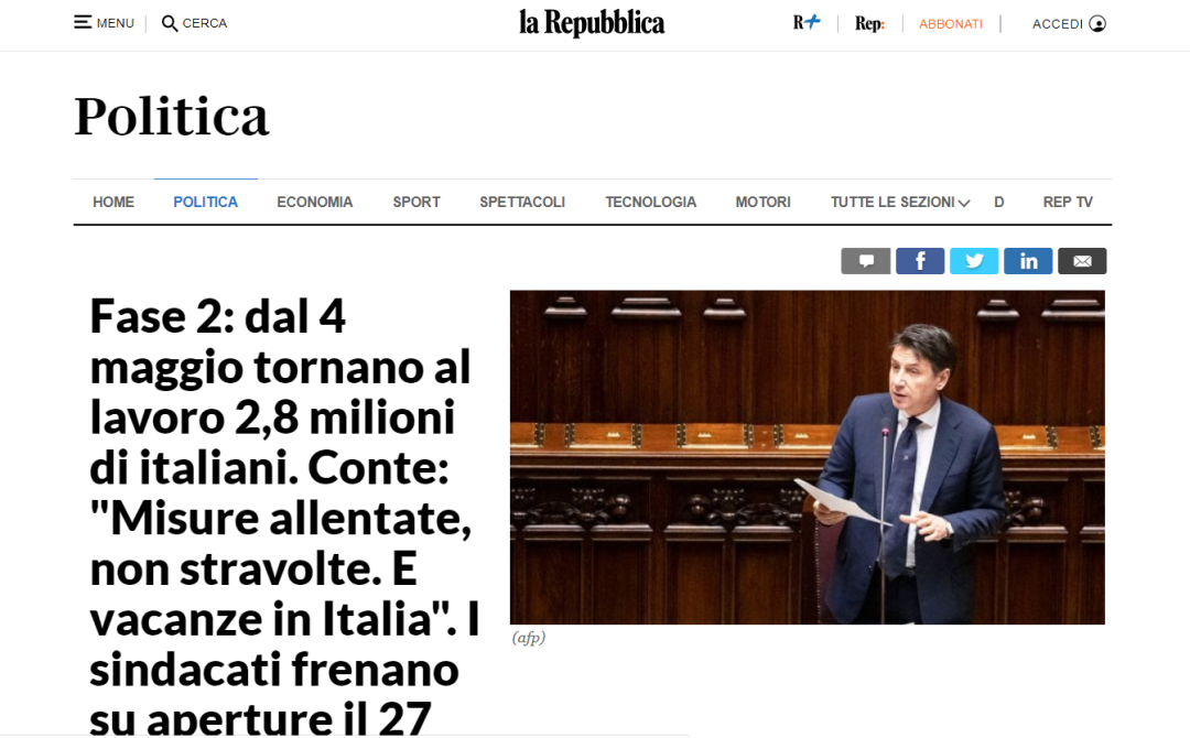 意大利刚公布了第二阶段(La Fase 2)的应对政策,从5月4号开始部分经济就会开始恢复。各个大学也在商量关于第二阶段的教学安排。