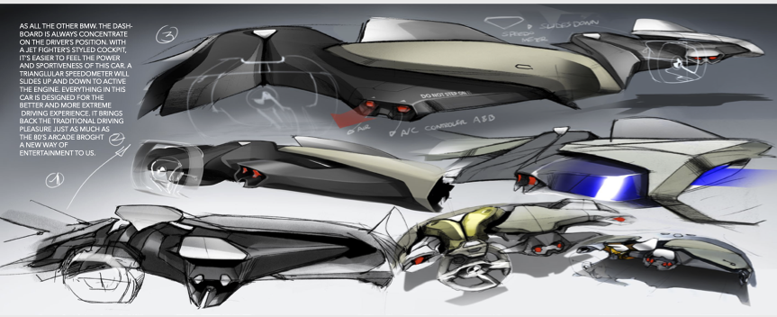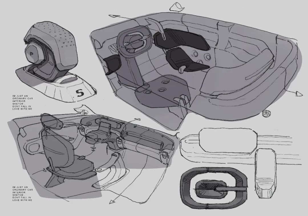 比方说我设计一些方向盘、设计一些档位、设计一些座椅等这些零部件造型,那些传统的造型过于繁复,但是这种科幻题材的造型对我来讲非常受启发。