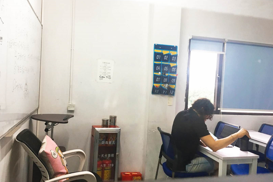有时动如脱兔,手舞足蹈地跟你说语法,有时会待在安静的小房间给同学们上网课。