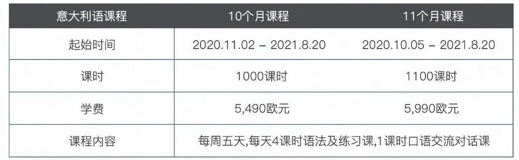 采用小班制全外教意大利语教学,为学生提供意大利语A1 A2 B1 B2 C1 C2级别课程,每班均不超过20人