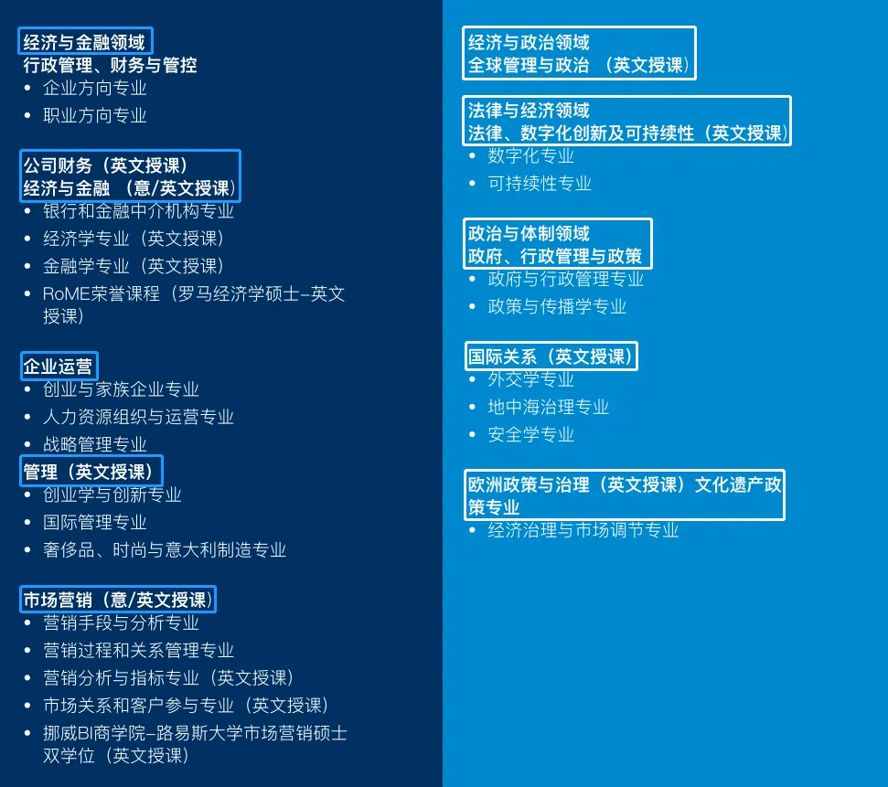 Luiss大学为建立广泛的合作伙伴网络,让学生们获得额外的学位,丰富其简历,在同龄人中脱颖而出,设立大学双学位