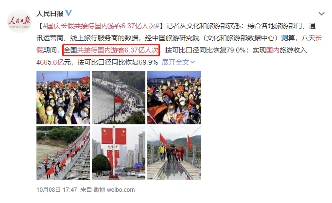 双节假期共计6.37亿人次出游,你有出去玩么?
