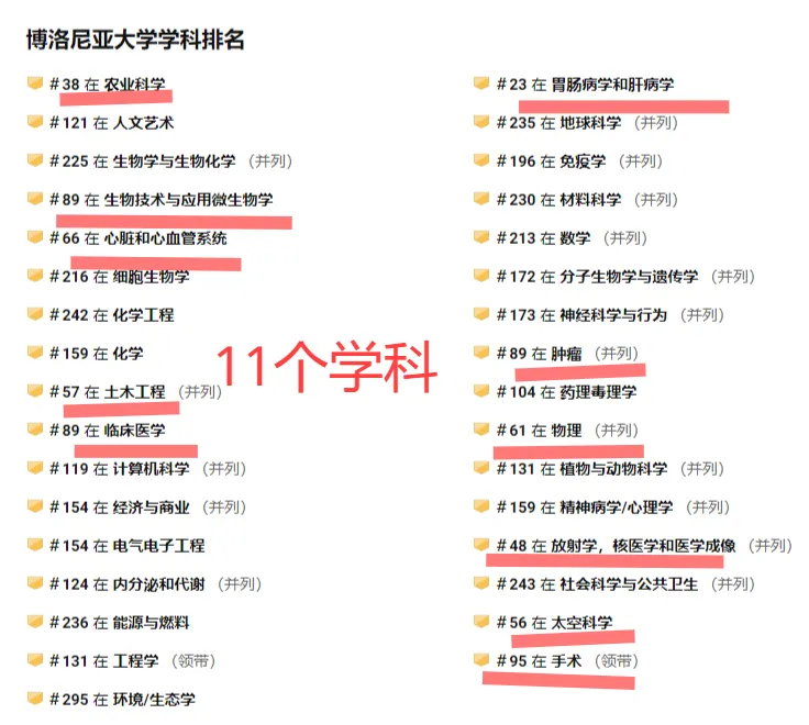 意大利大学的世界排名虽然不高,但是专业排名非常的不错,例如博洛尼亚大学的胃肠病学和肝病学世界排名23,罗马萨皮恩扎大学的物理学科排名19,帕多瓦大学的太空科学世界前15