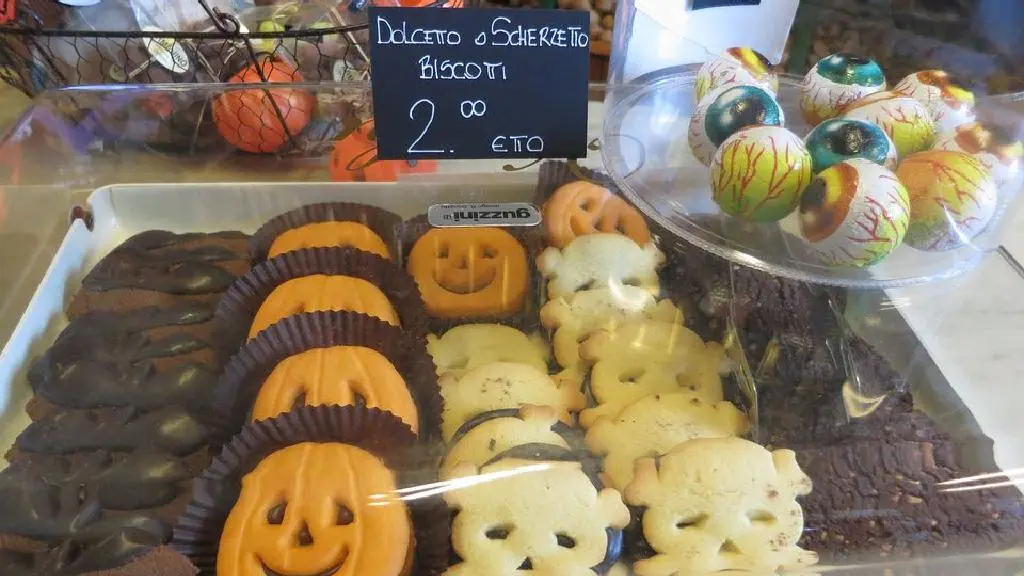 会在万圣节前夕,用杏仁糕和糖做成类似死人骨头(Ossa Dei Morti)的甜点来庆祝,因为他们相信逝者的灵魂会短暂的归回。