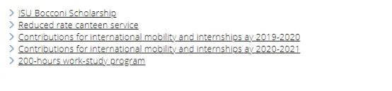 申请方式:发送电子邮件至agevolazioni@unibocconi.it,主题为“食堂申请”;附上ISSE副本 优惠有效期(例如:2020.12.01-2021.11.30)申请结果通过邮件发送给学生。