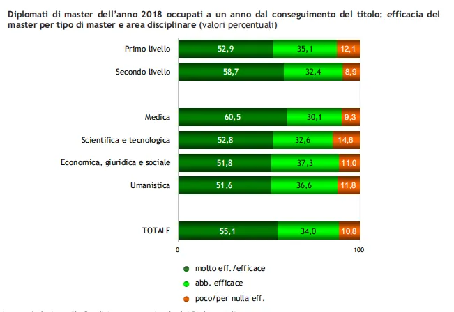我们来看看《2020年AlmaLaurea -- -- 硕士学位的就业状况报告》的数据吧。