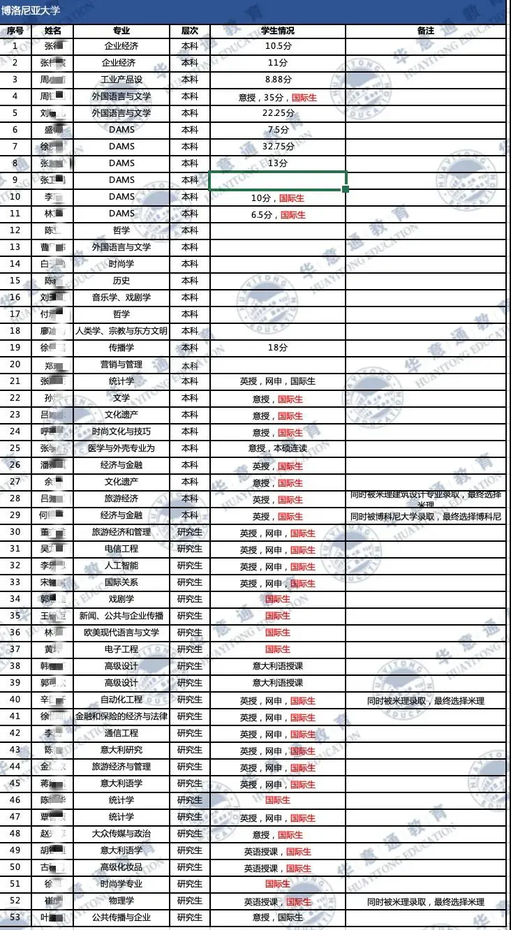 看看2020年华意通学员博洛尼亚大学的录取情况