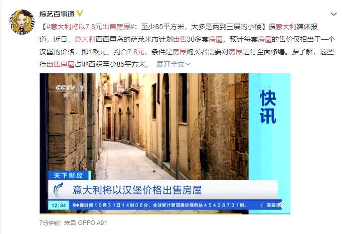 前段时间热搜,意大利将以7.8元出售房子。