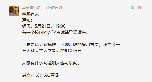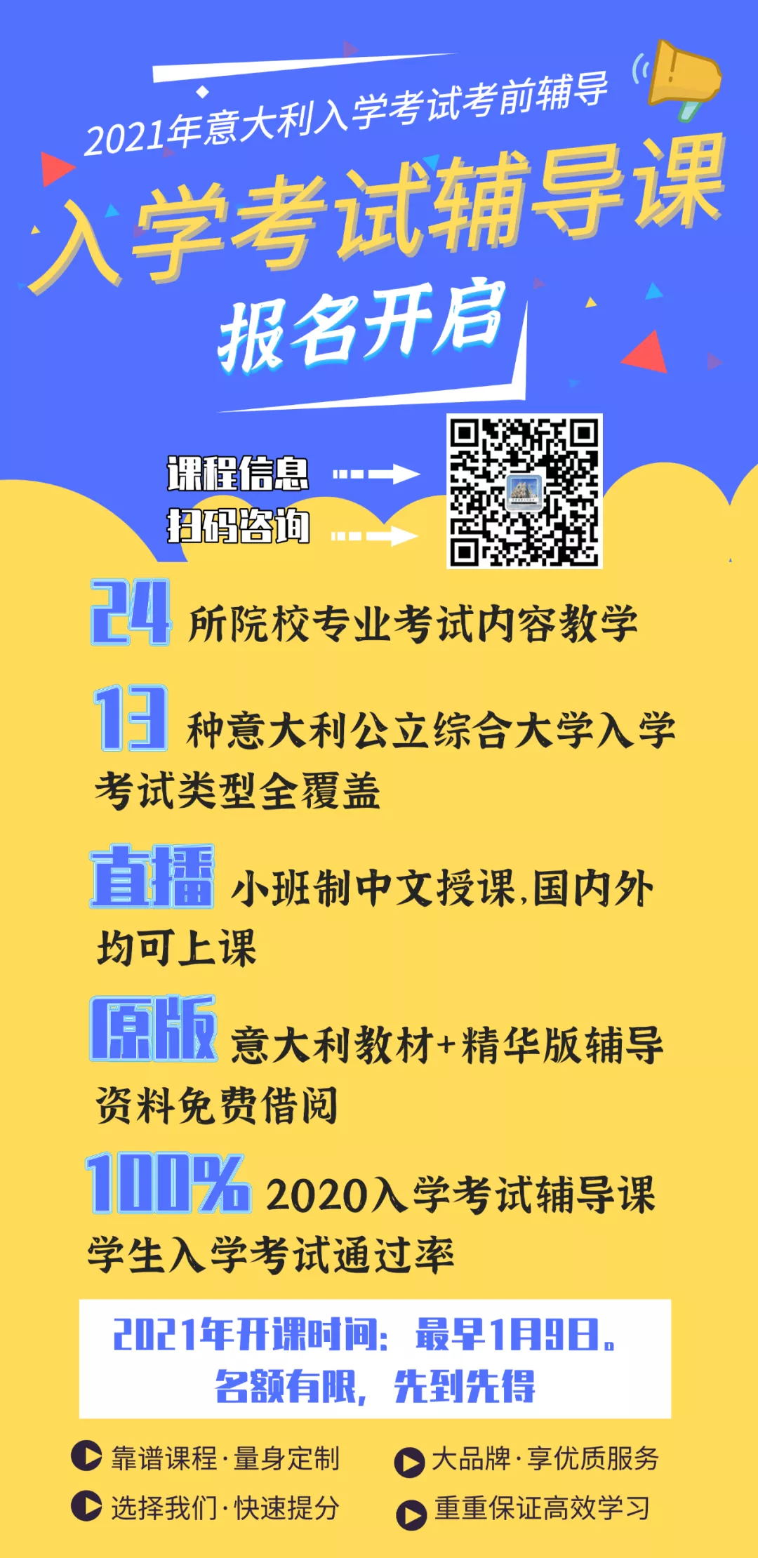 最后,目前只有针对意大利语授课的课程,人数有限制,以报名先后来安排。