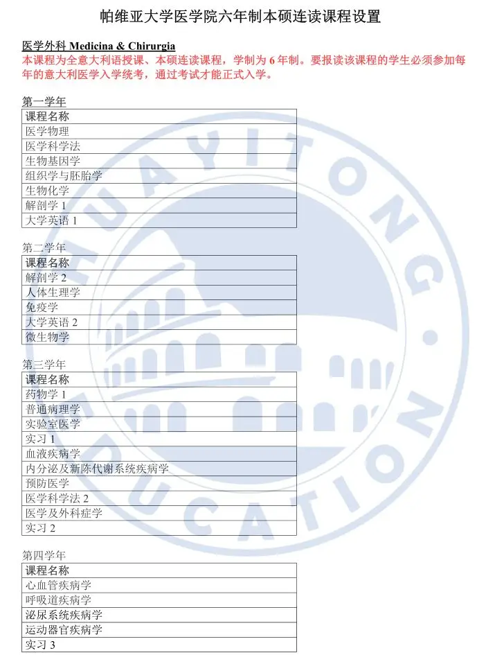 可以看出,帕维亚大学教学讲究充足的科学理论和充分的临床实践相结合,保证学生真正有所得、有所获。