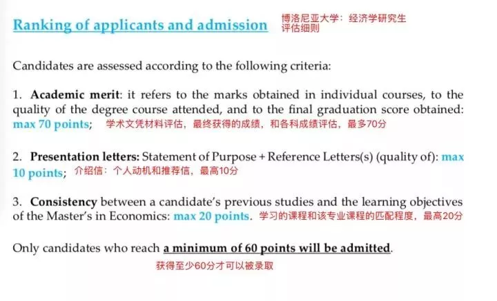 当然,有些则是专业奖学金,像是博洛尼亚大学的经济研究生专业,更注重课程匹配和本科的专业成绩等。