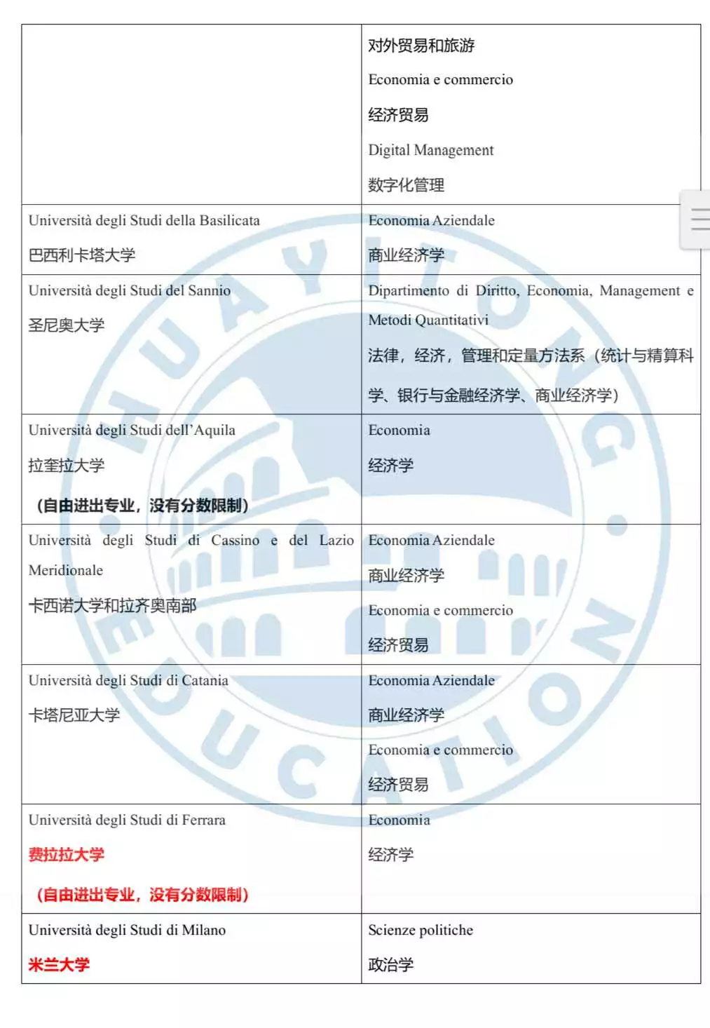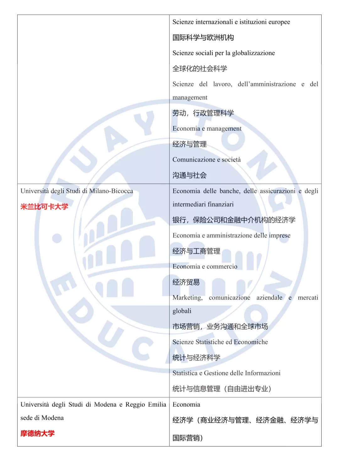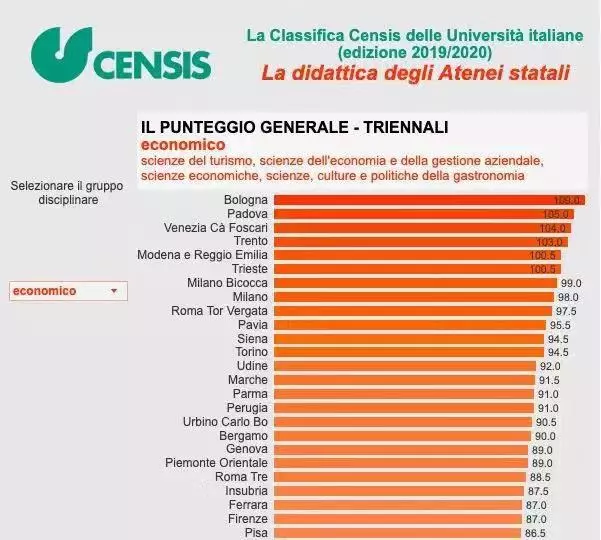 而意大利最好的经济学院,也早在暗中标明。根据Censis排名,2019年经济学院最好的本科院校分别是:博洛尼亚大学、帕多瓦大学、威尼斯东方大学。