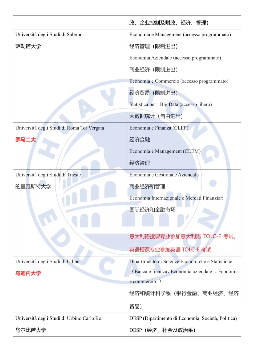 那需要考TOLC-E的学校又有哪些呢?