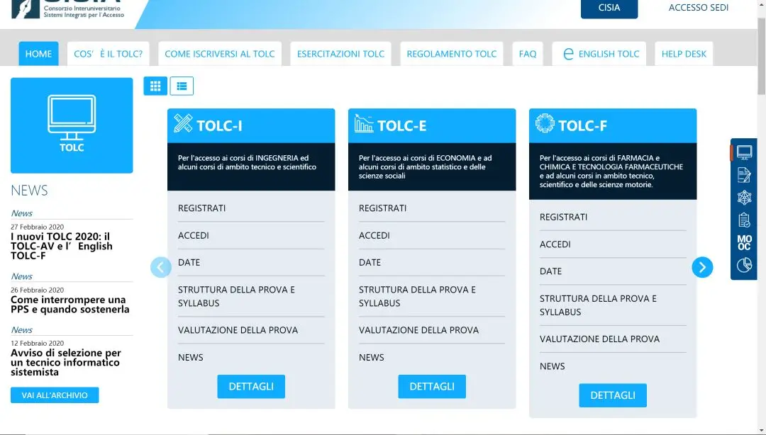 大学入学有tolc-su tolc-c tolc-e等等考试。经济学一类的专业的入学考属于tolc-e,e的满分是36分我考了22.25算是留学生里面最高分入学的,来讲一下我是这么备考的吧。考试练习网址:https://www.cisiaonline.it/