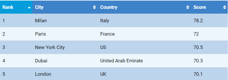 在另一份榜单——『The World's Best Cities For Luxury Shopping, 2020-2020年全球最佳奢侈品购物城市』中,米兰以78.2分的分数位于第一!