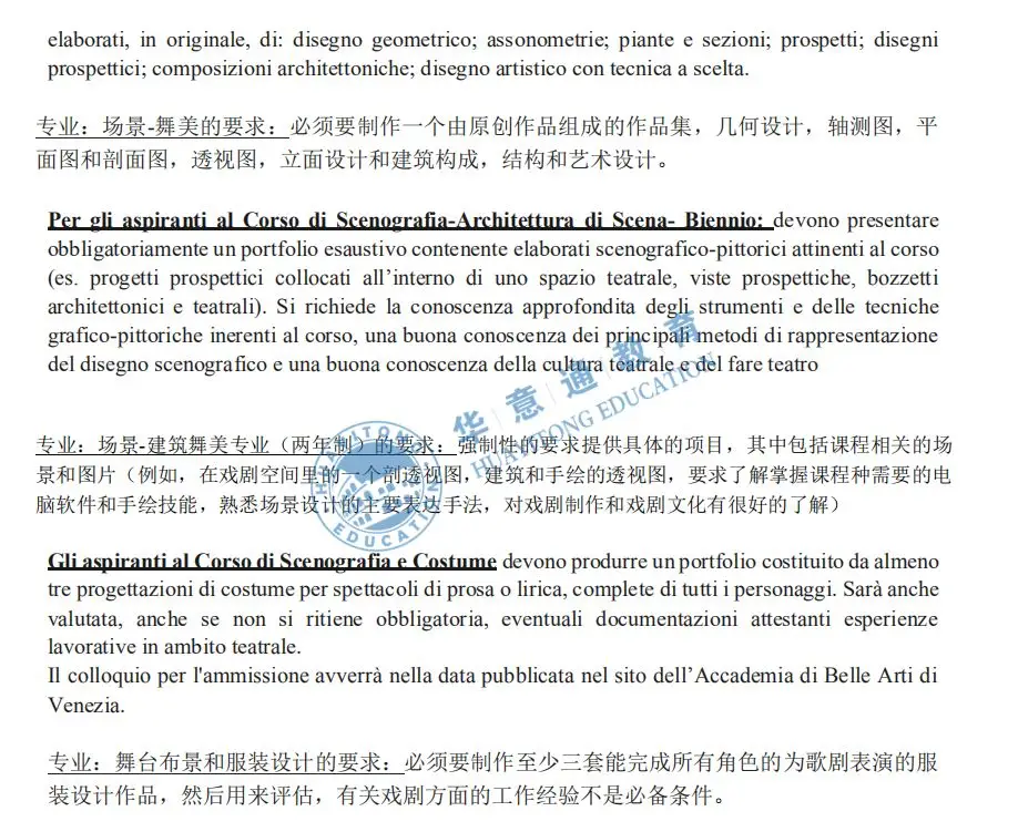 注意:佛罗伦萨美术学院、博洛尼亚美术学院和威尼斯美院要求本科学生也必须提交作品集