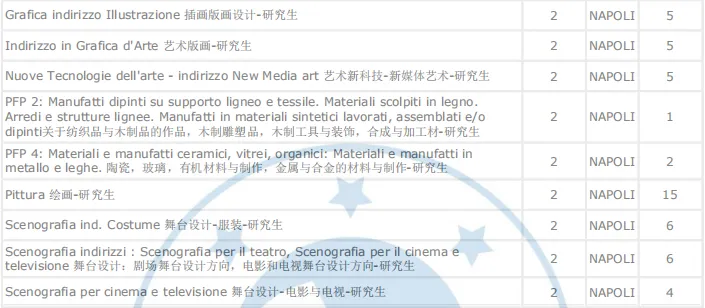 可以看出那不勒斯美院的招生名额还是非常多的,而2020/2021学年图兰朵计划预注册那不勒斯美院的学生人数为73人,招生人数远大于预注册人数,因此入学难度比较低。