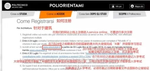 建筑比较特殊,除了要在学校官网上注册service online账号,还需要在意大利教育部上注册,首先要先参加意大利全国统考。