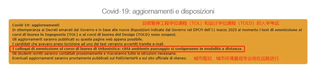 目前暂停工程学位课程(TOL)和设计学位课程(TOLD)的入学考试