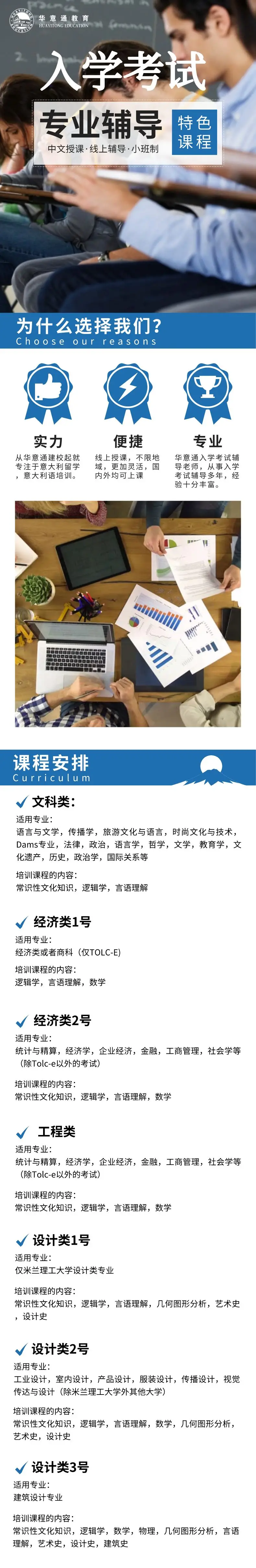 针对意大利本科入学考试,华意通特推出了针对性的入学考试辅导课程,如果对自己不是那么有信心,欢迎来获取专业辅导~