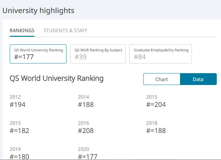 2)2020QS世界大学排名综合排名第177名。