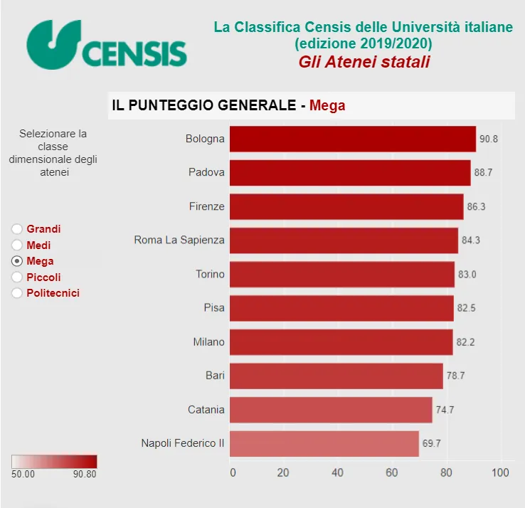 4)在2019年CENSIS意大利官方排名的大型意大利大学中排名第1。