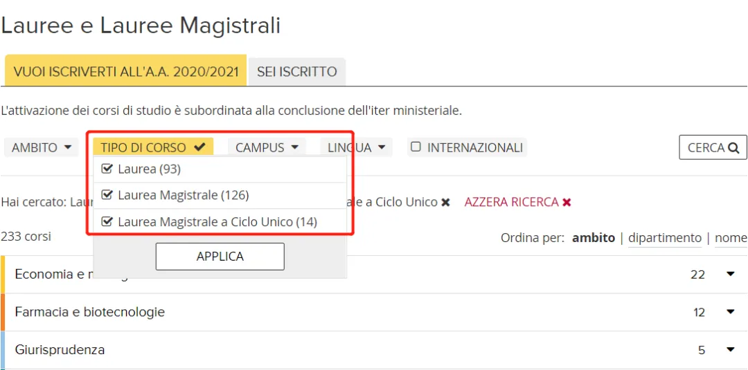 (注意:极少数意大利语授课比如Advanced design-高级设计也可以网申)