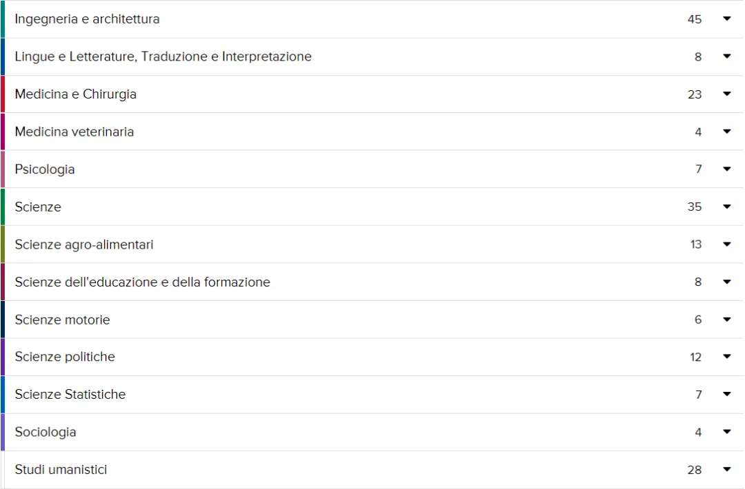 博洛尼亚大学作为世界第一所大学,文化底蕴深厚,专业覆盖面非常广,包含93个本科专业,126个研究生专业以及14个本硕连读专业。