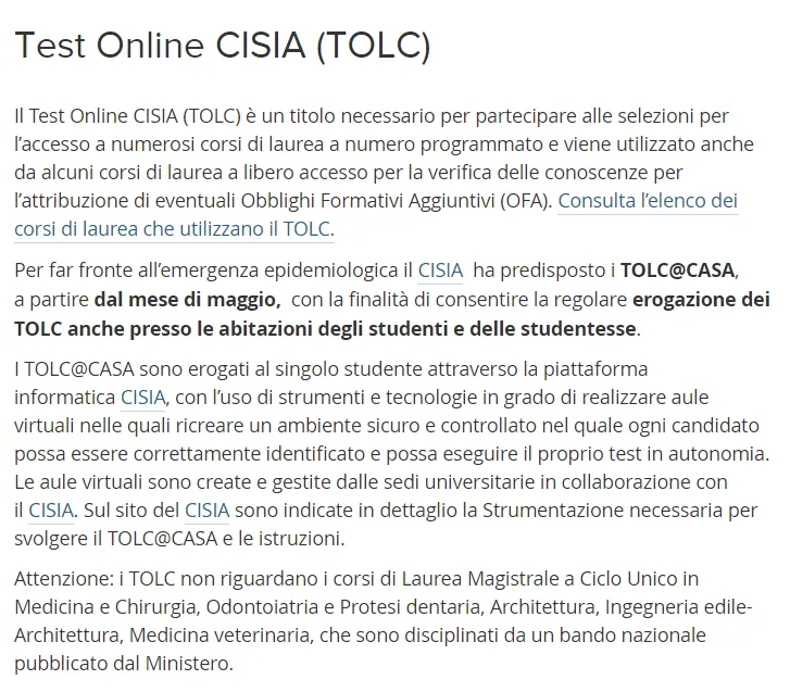 但由于疫情原因,CISIA从5月开始设立了TOLC @ CASA,目的是允许在学生家中也定期提供TOLC。