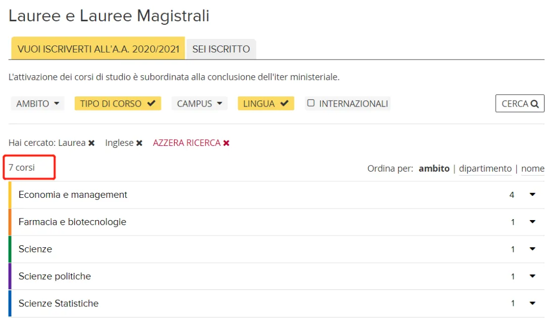 博洛尼亚大学设置有93个本科专业,其中7个为英语授课专业,5个可网申。
