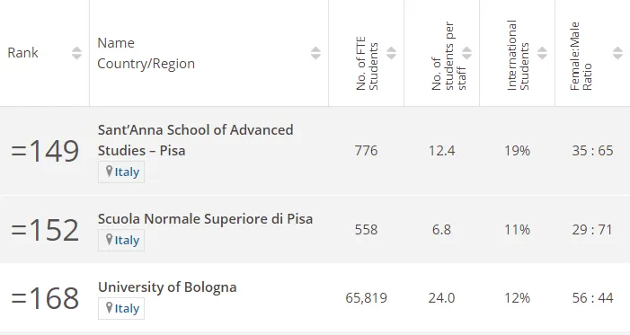 在THE世界大学总排名中,位于世界第168位,意大利第三。