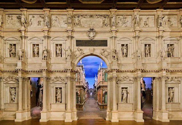 维琴察的奥林匹克剧院(Teatro Olimpico)是世界上现存最古老的室内剧院。它由帕拉迪奥(Palladio)设计,建于1580-1585年间,也是现存的仅有的三个文艺复兴时期剧院之一,还有萨比奥内塔(Sabbioneta)的万国剧院(Teatro all’antica)和帕尔马(Parma)的法尔内塞剧院(Teatro Farnese)。