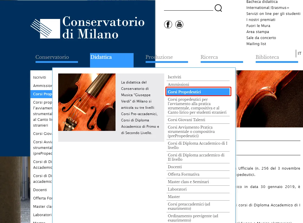 第二种:基本上所有的意大利公立音乐学院和部分公立美术院校的预科课程(Corsi Propedeutici)