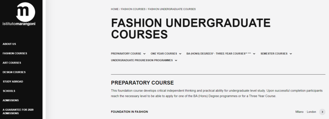 比如马兰欧尼服装设计学院的预科课程,成功完成该课程后,学员将达到可申请学士学位课程的必要水平。
