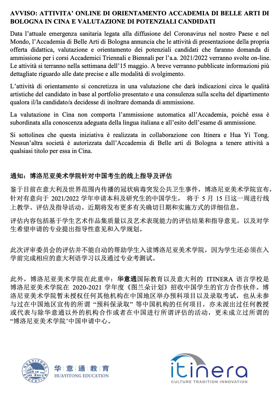 重要通知| 博洛尼亚美术学院官方线上讲座、入学评估及作品集指导活动来了!