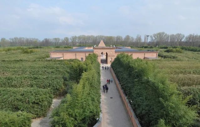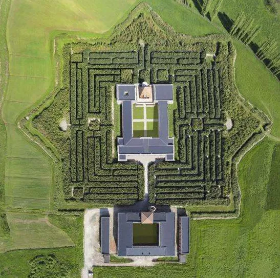 这座迷宫的图案是罗马风格的,在四个相互连通的象限里,路径均呈直角。创建这座迷宫的是前艺术出版商佛朗哥·马里亚·里奇和建筑师皮耶尔·卡洛·邦滕皮以及达维德·杜托(均为意大利人)。迷宫造价1100 万美元(720万英镑), 于2015 年6 月1 日开始运营。