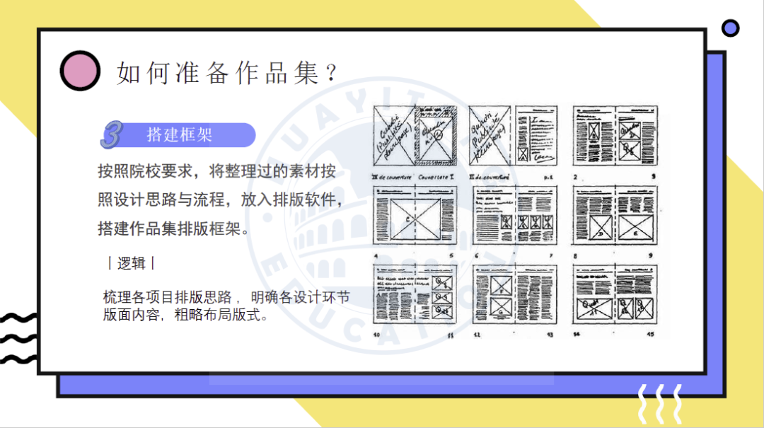 另外是搭建框架和作品集的逻辑性。文字的逻辑和图片排版的逻辑都是展示给考官的重要部分。